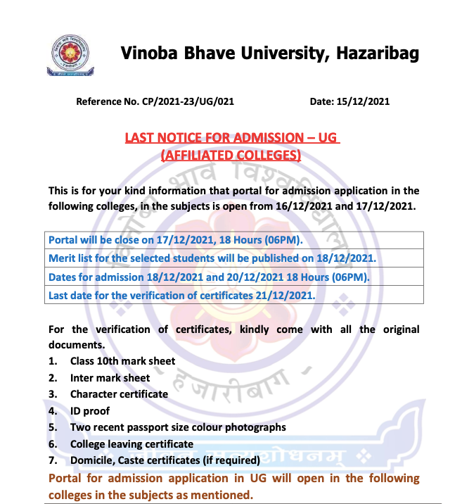 6th PROVISIONAL MERIT LIST UG SEM-I (2021-24) Search Box में अपना नाम लिखकर search करें। Sl Form NoApplication noFull NameFather NameDOBCaste CategoryEWSDOMICILEGenderMax Weightagecalculated total marksMeritApplide on StreamCORE Remarks 120210527252UG/2021-2024/490070MD NEHAL MUSTAFAMD MAJHAR IMAM2002-03-04BCINONOMALE0.0075.0075ArtsHGeography 220210528227UG/2021-2024/486340GAUSIYA PARWEENMD MUSTAK2002-12-28BCIINOYESFEMALE1.9866.0067.98ArtsHGeography 320210526505UG/2021-2024/489838NITISH KUMAR SINGHKISHORI SINGH2003-04-02GENNOYESMALE0.0061.0061ArtsHGeography 420210526925UG/2021-2024/489875RANJEET KUMAR RAYSURESH RAY2001-11-08GENYESYESMALE0.0060.0060ArtsHGeography 520210526243UG/2021-2024/489743PRADEEP KUMAR PANDEYMANOJ KUMAR PANDEY2004-01-08GENNOYESFEMALE1.4749.0050.47ArtsHGeography 620210136646UG/2021-2024/146237PUSHPA KUMARIRAMDEV YADAV2004-04-04BCIINOYES1.6555.0041.5056.65ArtsHHindi 720210266339UG/2021-2024/244719ASHIYA PARWEENMD RAFIQUE SHEIKH2003-02-18BCIINOYESFEMALE1.3545.0046.35ArtsHHindi 820210308280UG/2021-2024/326458ANISH KUMAR VERMANAGESHWAR PRASAD2003-01-03BCIINOYESMALE0.0045.0045ArtsHHindi 920210268391UG/2021-2024/287938PRAKASH KUMAR UJJWALMAHENDRA RAVIDAS2003-09-19SCNOYESMALE0.0063.6063.6ArtsHHistory 1020210526458UG/2021-2024/489820SANDEEP KUMAR SINGHAWADH KISHOR SINGH2004-03-18GENNOYESMALE0.0067.8067.8ArtsHPolitical Science 1120210526443UG/2021-2024/489773SHREE RAM PRASAD YADAVPUNA MAHTO2003-04-28BCIINOYESMALE0.0063.6063.6ArtsHPolitical Science 1220210528005UG/2021-2024/490444KUNDAN KUMARBHIKHAN RAVIDAS2002-11-19SCNOYESMALE0.0061.6061.6ArtsHPolitical Science 1320210527221UG/2021-2024/490071FUL KUMARIDASHRATH YADAV2003-05-11BCIINOYESFEMALE1.3846.0047.38ArtsHPolitical Science 1420210527199UG/2021-2024/489891PUNAM KUMARIRAMSUNDRA DAS2002-07-16SCNOYESFEMALE1.3545.0046.35ArtsHSociology 1520210527788UG/2021-2024/490340REKHA KUMARICHHOTU SAW2000-01-18BCINOYESFEMALE1.3545.0046.35ArtsHSociology 1620210527562UG/2021-2024/490243JAYKANT RAVIDASSUKDEO RAVIDAS1999-01-15SCNOYESMALE0.0047.0047ScienceHMathematics 1720210528543UG/2021-2024/266778PINKU HANSDAMALKISH HANSDA2000-11-05STNOYESMALE0.0067.0067ScienceHPhysics