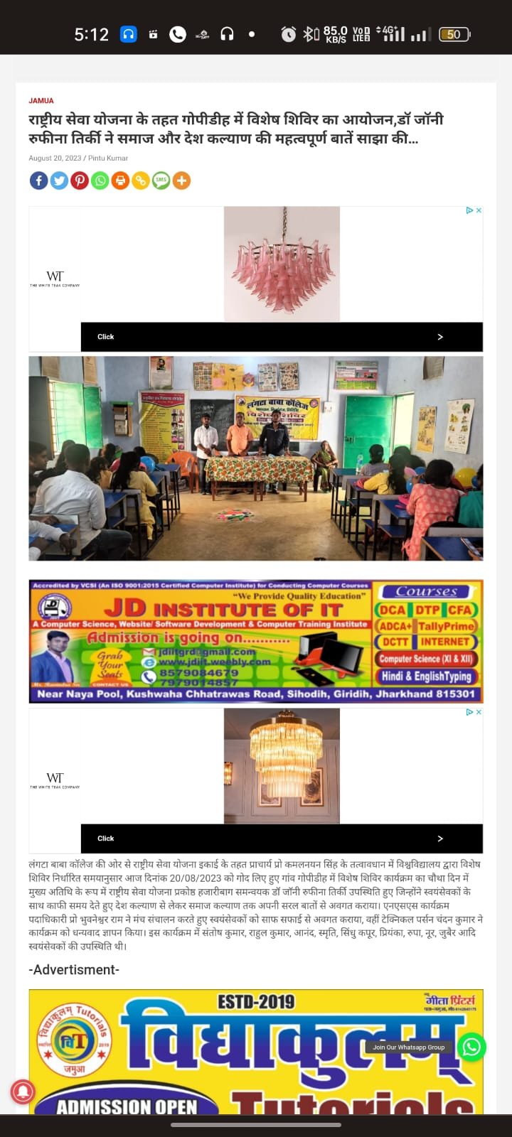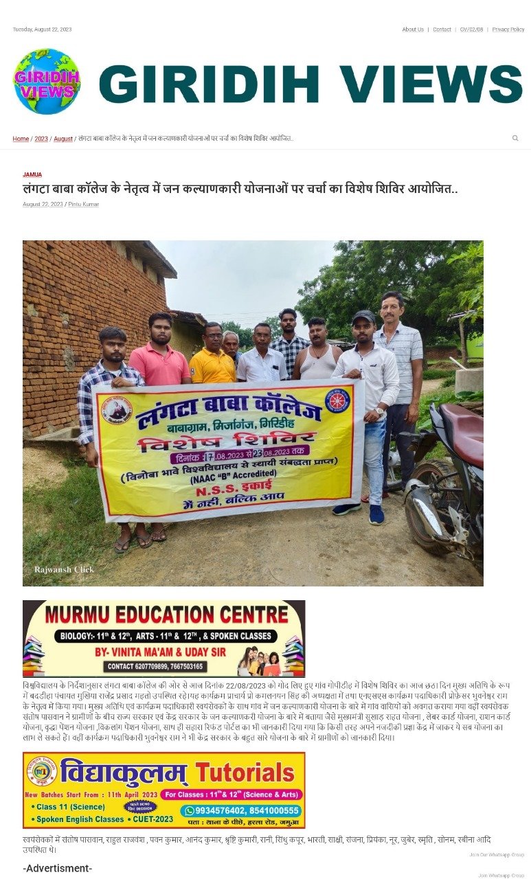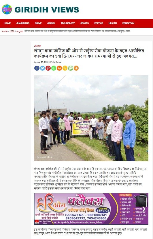 तिरंगा यात्रा (NSS द्वारा आयोजित) अंतर्राष्ट्रीय युवा दिवस युवा दिवस Special Camp by NSS at Gopidih Village (Adapted by NSS) सड़क सुरक्षा जागरूकता अभियान (NSS द्वारा आयोजित) GB President and Secretary Visit प्रेमचंद जयंती International NSS day Workshop on NEP 2020 भूतपूर्व प्राध्यापक, हिंदी विभाग श्री दीपक कुमार सह वर्तमान IPS, Jharkhand का महाविद्यालय भ्रमण मेरी माटी मेरा देश (NSS द्वारा आयोजित) हिंदी पखवाड़ा Fit India Freedom India by NSS Faculty Development Programme COVID-19 Vaccination Camp by NSS and IQAC